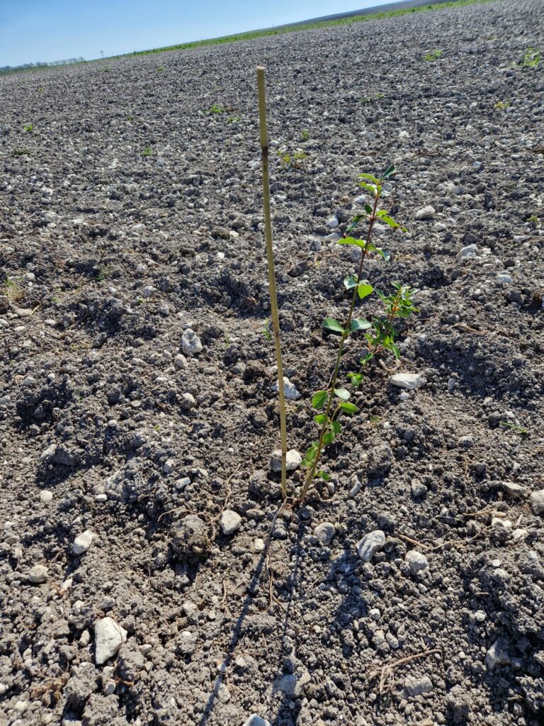 Le vent et le soleil ont bien séché la terre qui commençait déjà à faire une petite couche dure (pour mémoire nous avions du reporter deux fois la date de ce chantier pour causes de pluie). Heureusement pour les jeunes plants il y a encore beaucoup d’humidité en dessous.